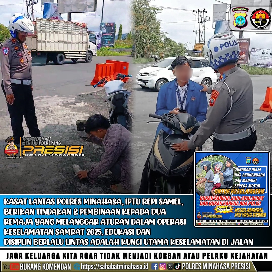 Operasi Keselamatan Samrat 2025 ini bertujuan untuk menekan angka pelanggaran dan kecelakaan lalu lintas dan merespon keluhan Masyarakat tentang kenalpot brong yang sudah meresahkan. Polres Minahasa mengimbau seluruh pengguna jalan untuk selalu mematuhi peraturan, menggunakan perlengkapan keselamatan, dan melengkapi dokumen kendaraan mereka.STOP “Kenalpot Brong.