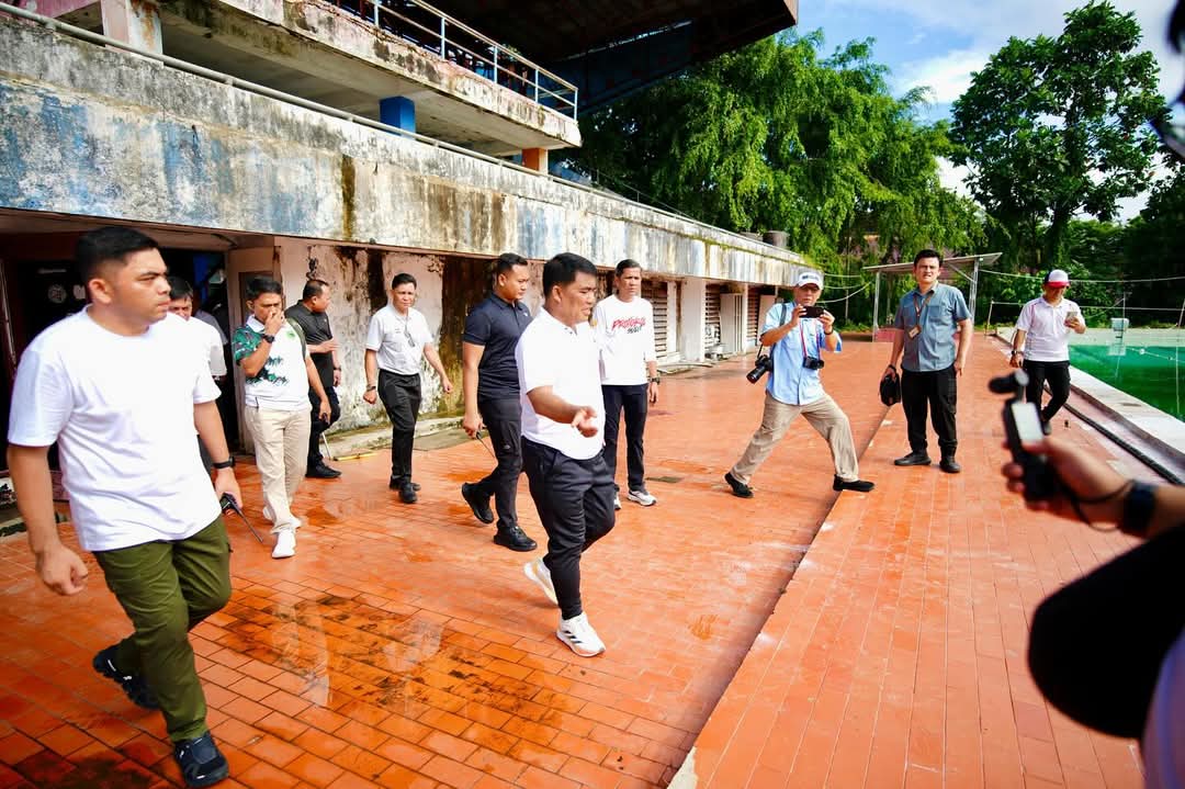 Tampak Gubernur Yulius turut didampingi Sekprov Sulut Steve Kepel, Kepala Dinas Pemuda dan Olahraga Daerah Provinsi Sulut, Jimmy Ringkuangan AP MSi, meninjau seluruh fasilitas KONI, sampai di fasilitas kolam renang.