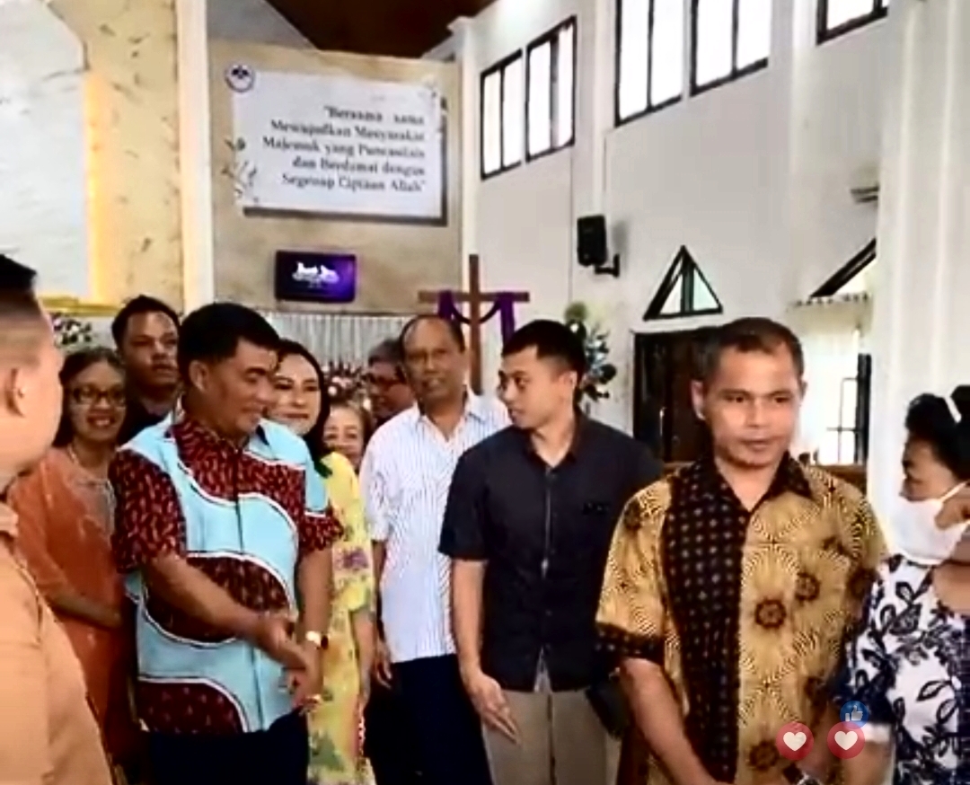 Begitu juga saat jemaat berbaris dan antri untuk bersalaman dengan Pendeta dan Pelsus yang sudah menunggu di pintu gereja, Gubernur Yulius dan Ibu Anik ikut mengantri sambil bersalaman dengan anggota jemaat lainnya.