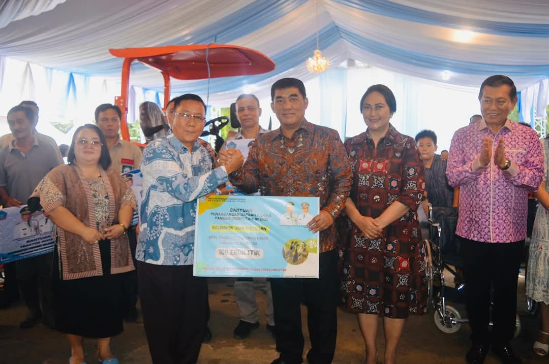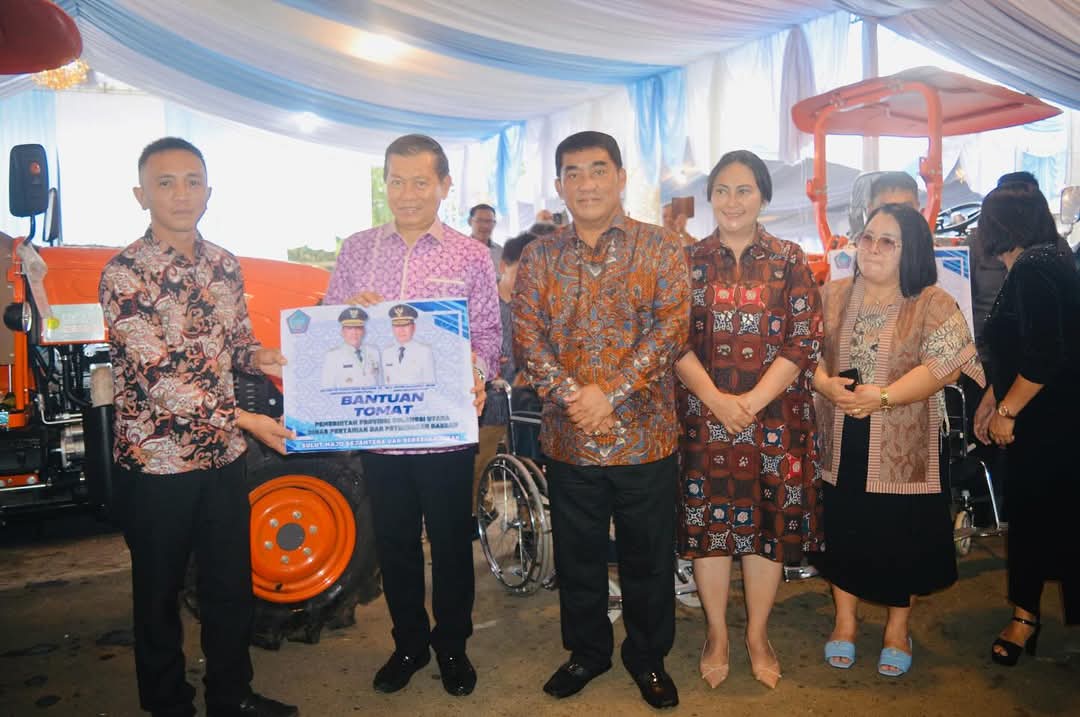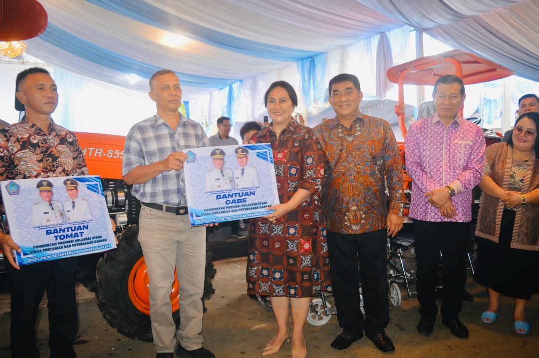 Trendingmanado.com— Gubernur Sulut Mayjen TNI (Purn) Yulius Selvanus SE menyerahkan bantuan untuk kelompok petani dan kelompok nelayan, Minggu 11 Mei 2025. Penyerahan bantuan dari Pemerintah Provinsi Sulawesi Utara tersebut diserahkan Gubernur Yulius, Wakil Gubernur Dr Johanis Victor Mailangkay SH MH, dan Ketua TP PKK Provinsi Sulut Ny Anik Yulius Selvanus.