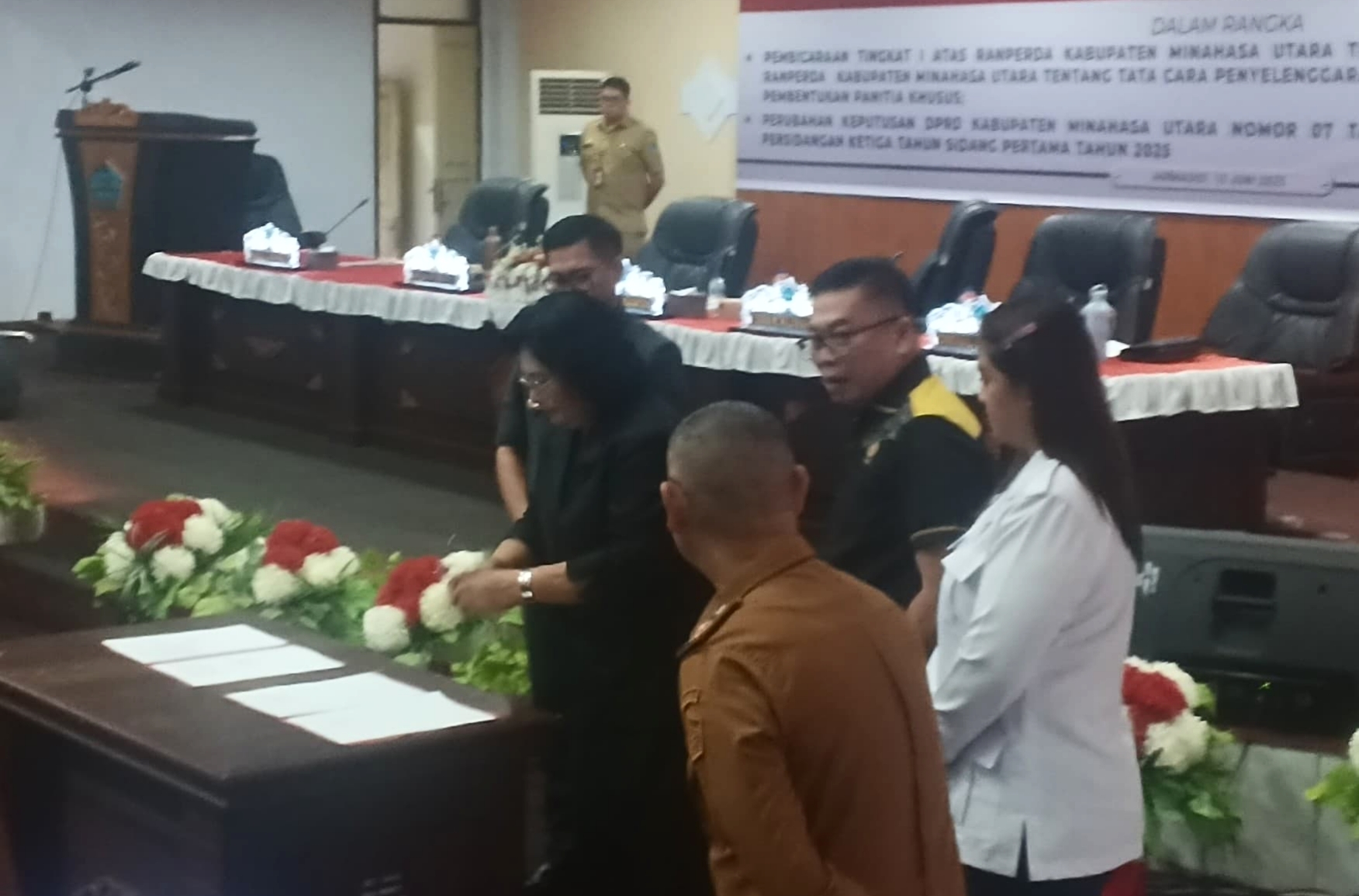 Rapat paripurna dilanjutkan dengan agenda Pembentukan dan Penetapan Panitia Khusus serta Perubahan Keputusan DPRD Kabupaten Minahasa Utara 2025 Nomor 07 Tahun 2025 tentang Penetapan Kegiatan Masa Persidangan ke-3 Tahun Sidang Pertama Tahun 2025.(*)