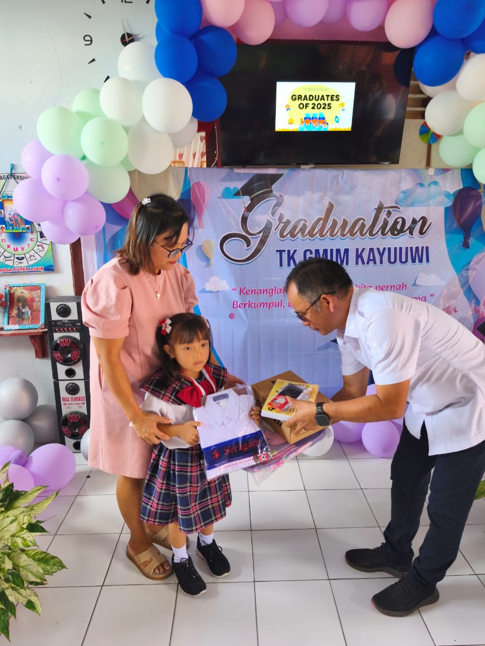 Trendingmanado.com- Pemerintah Desa (Pemdes) Kayuuwi Satu menyerahan bantuan Pendidikan kepada 6 orang anak didik Taman Kanak-kanak (TK) yang telah menyelesaikan study. Rabu (11/6/2025).