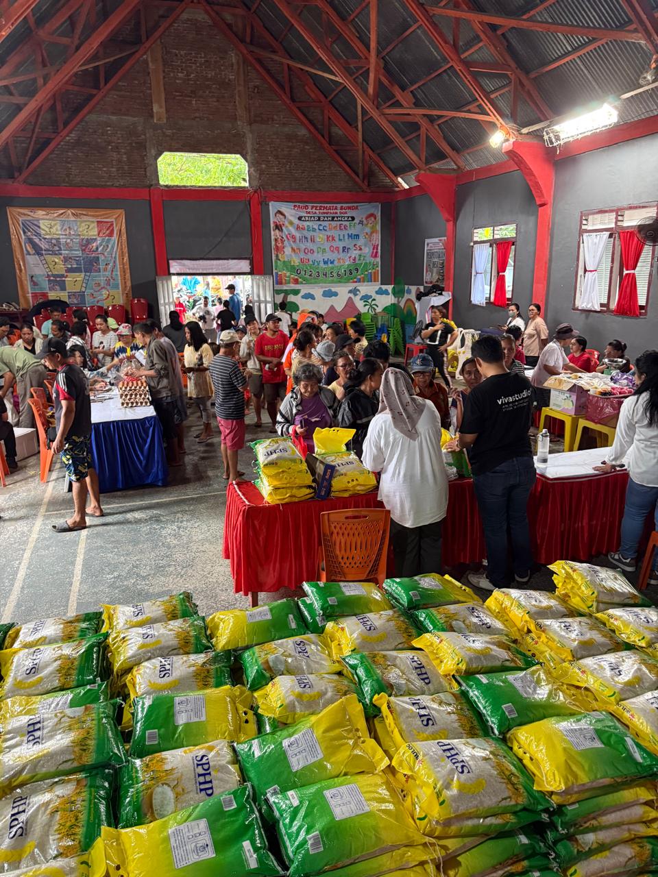 Di Desa Tumpaan Dua, tercatat pasokan bahan pokok strategis seperti beras SPHP sebanyak 2,5 ton dilepas ke masyarakat dengan harga hanya Rp 58.000 per 5 kilogram jauh di bawah harga pasar.