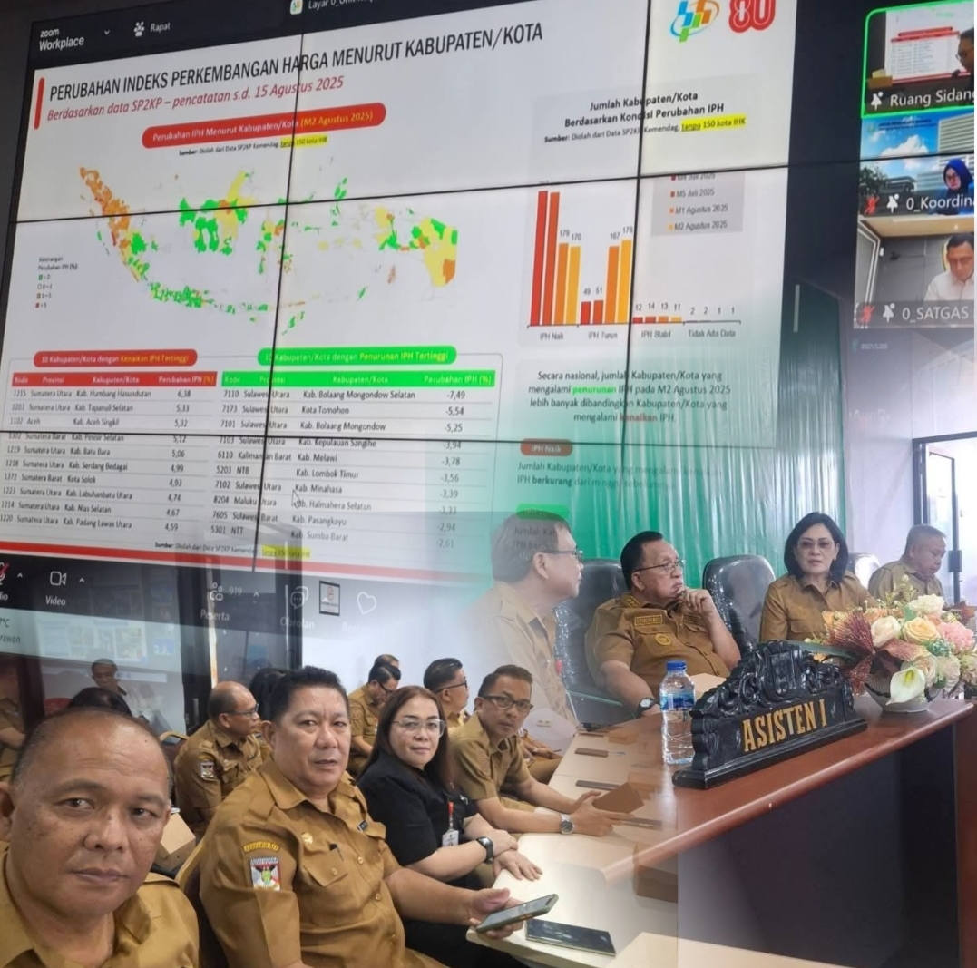 Dalam rakor tersebut, Minahasa mencatat capaian positif dengan menurunnya Indeks Perkembangan Harga (IPH) secara signifikan. Berdasarkan data terbaru, IPH Minahasa mengalami penurunan sebesar -3,39 dibandingkan minggu sebelumnya.