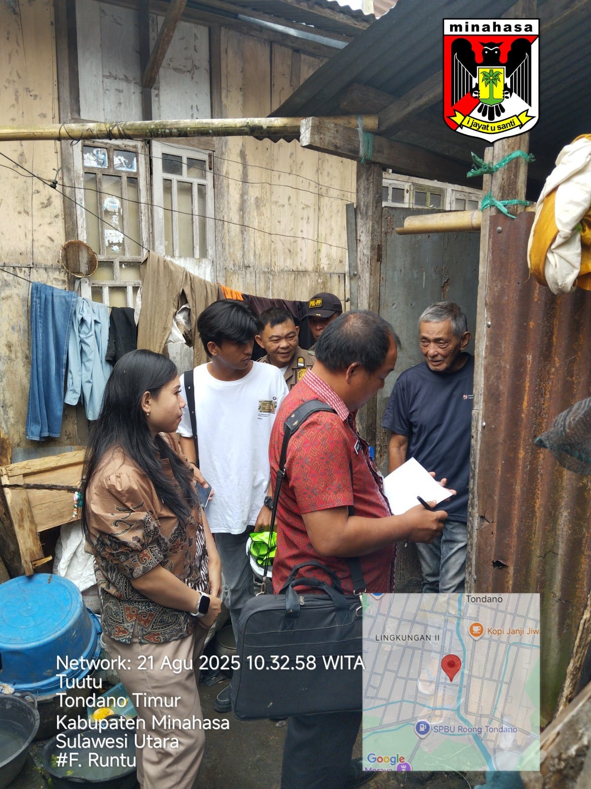 Trendingmanado.com- Badan Penanggulangan Bencana Daerah (BPBD) Kabupaten Minahasa bersama instansi terkait melaksanakan kegiatan pengumpulan data JITUPASNA (Pengkajian Kebutuhan Pascabencana) serta verifikasi lapangan di Kecamatan Tondano Barat, Kelurahan Tuutu, Kamis (21/8/2025).
