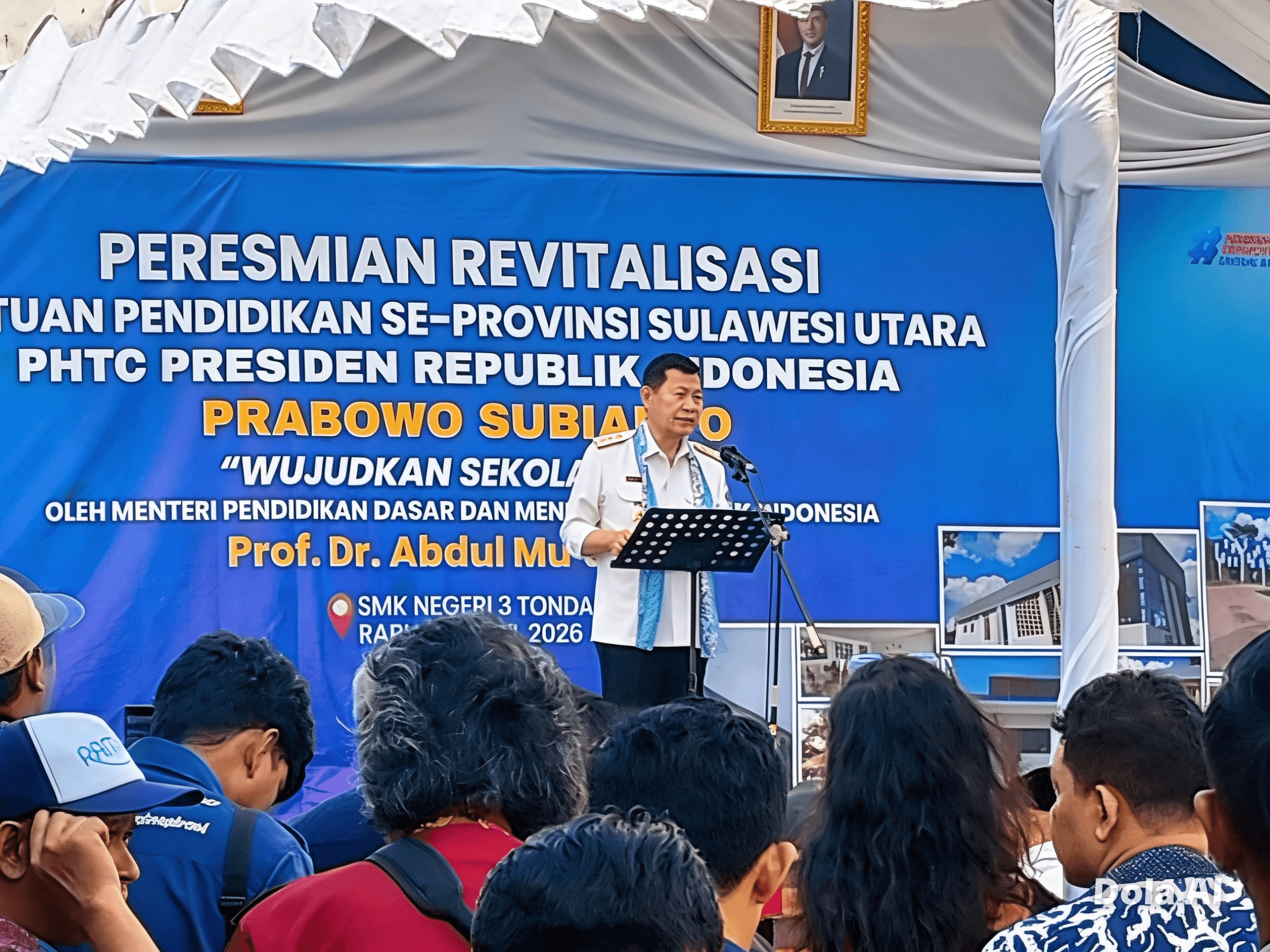 Hal ini dikatakan Gubernur Yulius dalam sambutan yang dibacakan Wagub Sulut Dr Victor Mailangkay SH MH, pada acara Peresmian Revitalisasi Satuan Pendidikan se-Provinsi Sulawesi Utara PHTC Presiden Republik Indonesia Prabowo Subianto Wujudkan Sekolah Asri, yang digelar di SMK Negeri 3 Tondano, Kabupaten Minahasa, pada Rabu 22 April 2026.