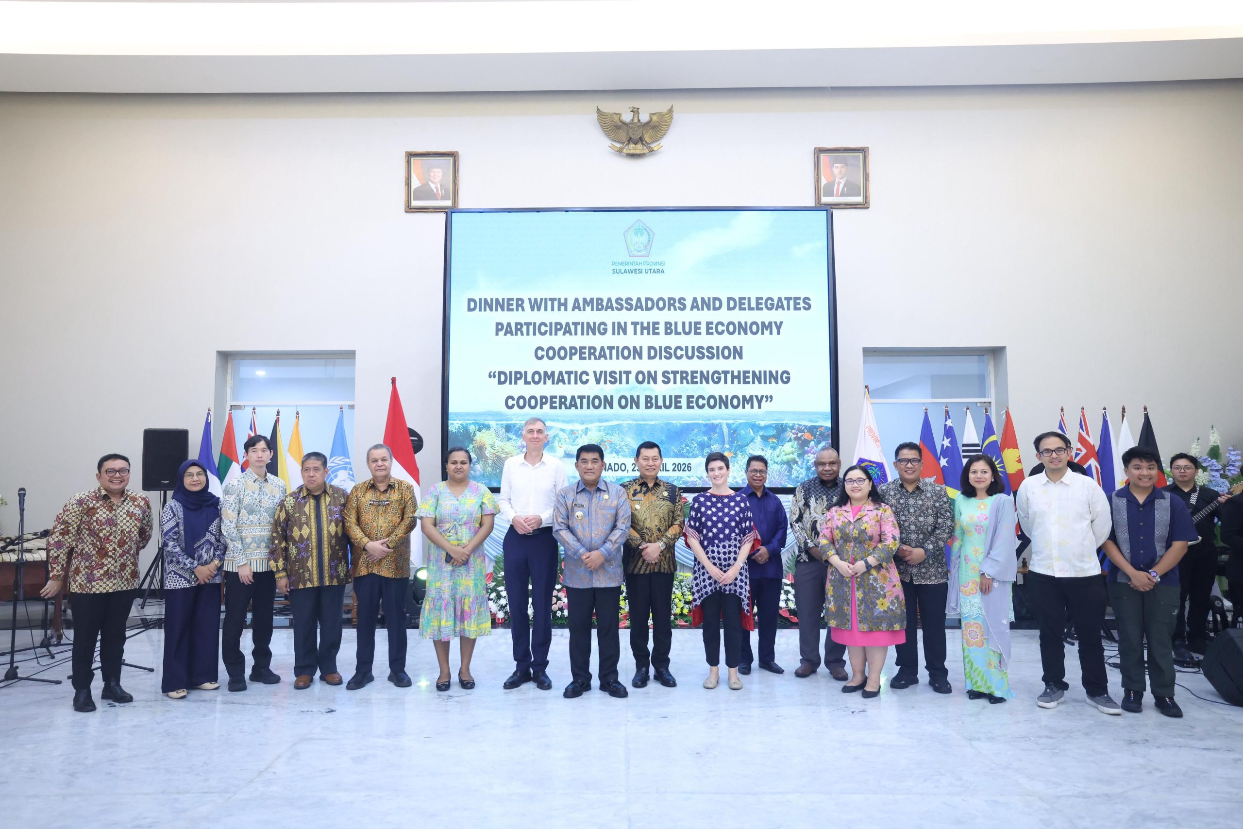 Ini disampaikan oleh Gubernur Sulawesi Utara Mayjen TNI (Purn) Yulius Selvanus SE., dalam acara makan malam bersama delegasi kunjungan diplomatik dari 13 negara, perwakilan Badan PBB, serta organisasi non-pemerintah (Non Government Organization/NGO) internasional, yang dilaksanakan di Wisma Negara Bumi Beringin, Manado pada Kamis, 23 April 2026.