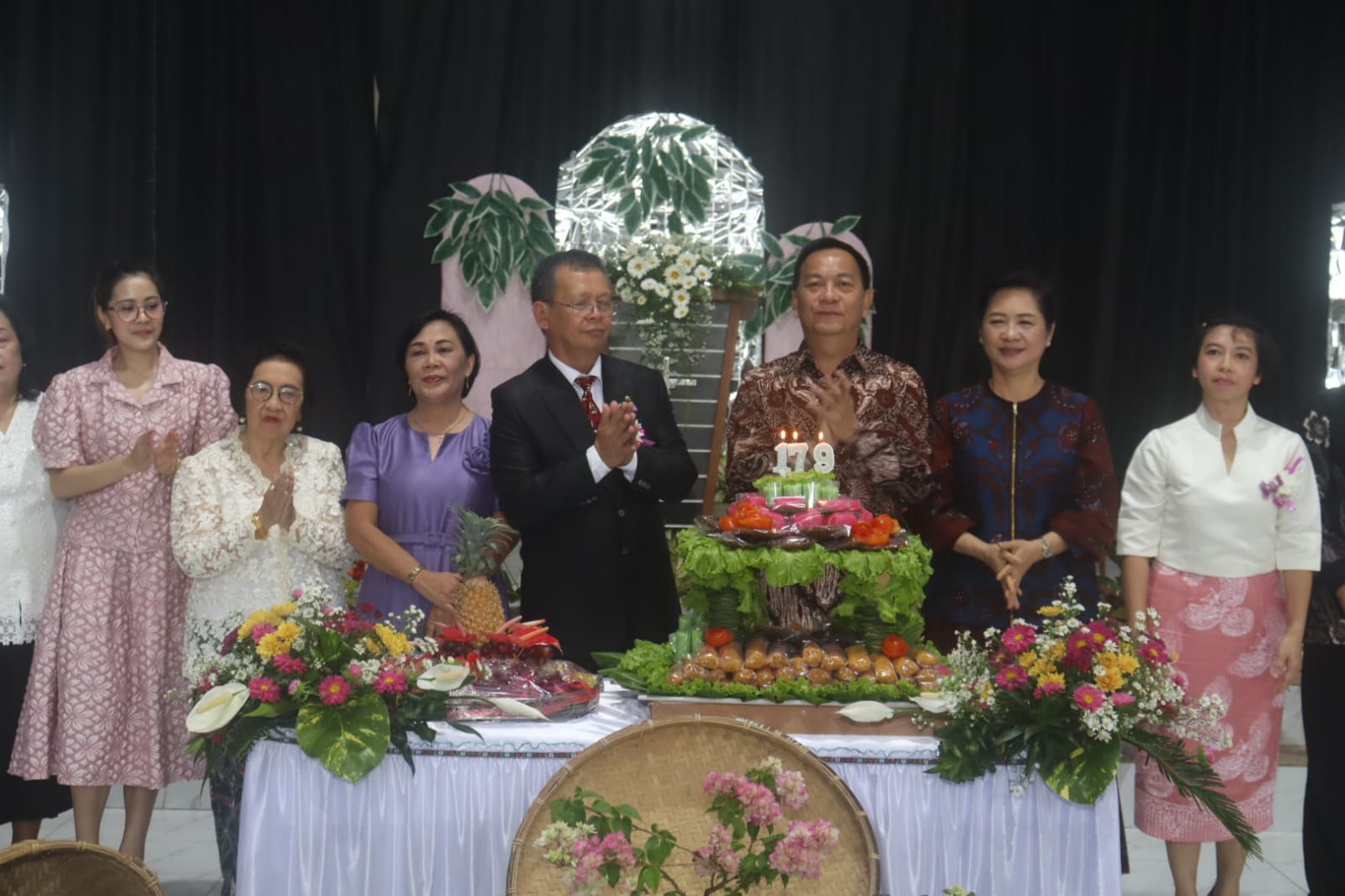 Syukur Hari Ulang Tahun ke-179 GMIM Syaloom Sarongsong Tumatangtang ditandai dengan pemasangan dan peniupan lilin oleh Walikota Tomohon, Ketua BPMS GMIM, perwakilan Gubernur Sulawesi Utara, Ketua TP-PKK Kota Tomohon, serta Ketua BPMW.